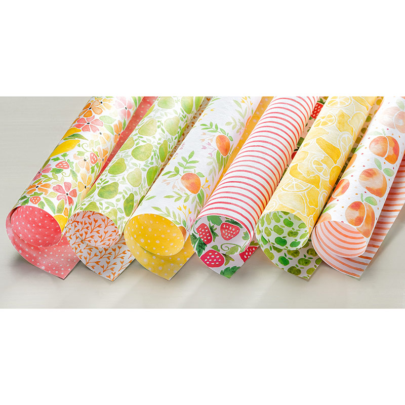 It was made using a strip of the paper inserted into one of Stampin’ Up’s Clear Tiny Treat Box (141699). I added some Peekaboo Peach Ruched Ribbon (141427), and tied on a sentiment stamped with Fruit Stand Photopolymer Stamp Set #141770) using a bit of Linen Thread (104199). Perfect for a little Yankee Candle Sampler candle.